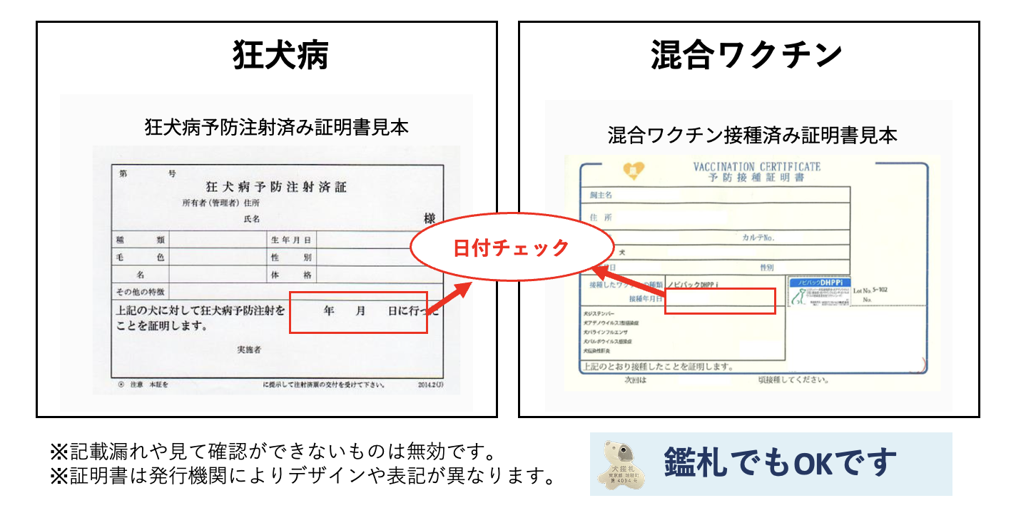 ※初回ご利用時に「狂犬病接種証明書」・「ワクチン接種証明書」原本をお持ちください